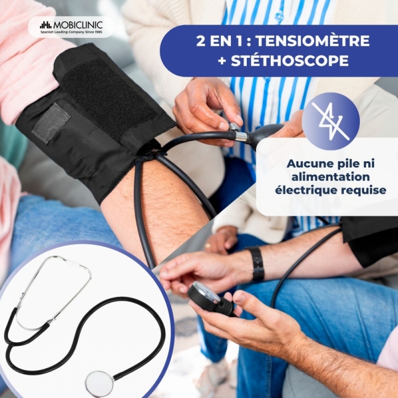 Pack tensiomètre de bras portatif et stéthoscope en aluminium et double cloche | Mobiclinic