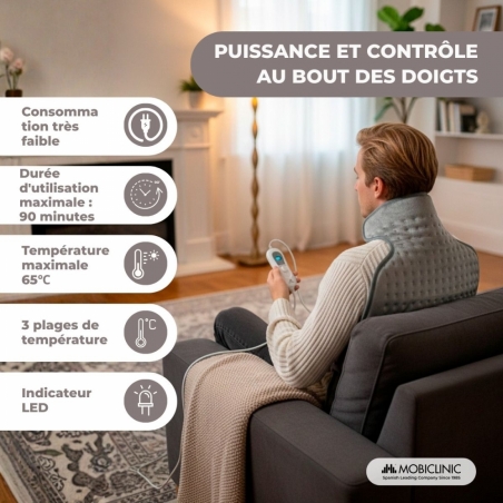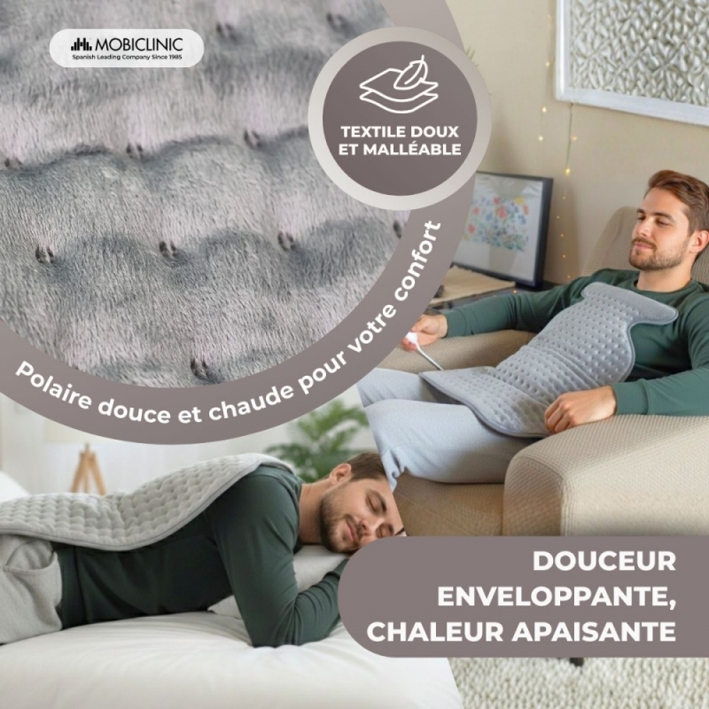 Cette chaleur douce dilate les vaisseaux sanguins et facilite la circulation, soulageant ainsi la douleur. Il contribue également à la récupération de la mobilité musculaire et articulaire, car il détend les muscles et réduit l'inconfort.