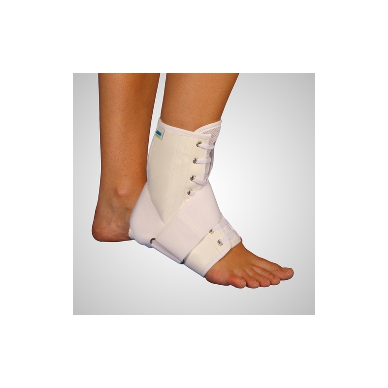 Cette chevillère stabilisatrice anti-entorse intègre une sangle pronatrice inélastique qui stabilise l'articulation en pronation et évite les mouvements de supination ou d'inversion lors de la marche. L'adaptation et la fermeture se font par laçage pour obtenir un ajustement parfait. Contient deux tiges spirales latérales. Parfait pour le traitement des entorses graves et répétitives, préventif lors de la pratique sportive, traitement stabilisant après une immobilisation prolongée.