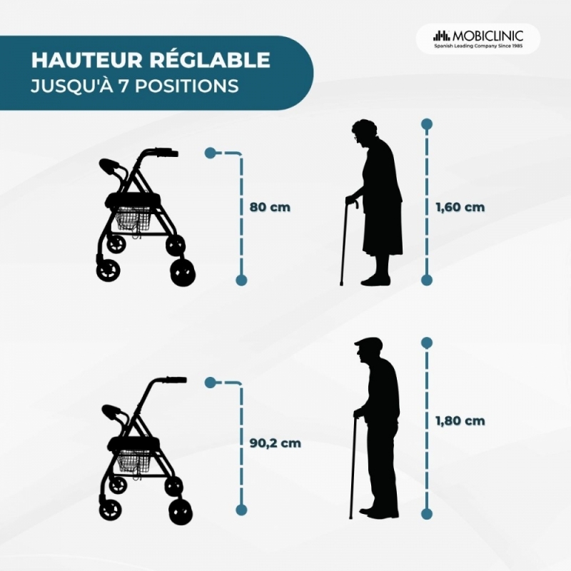 - Il s'adapte à la taille de chaque utilisateur car il est réglable en hauteur, s'adaptant ainsi aux besoins de chacun. Il est également pliable et facile à ranger.