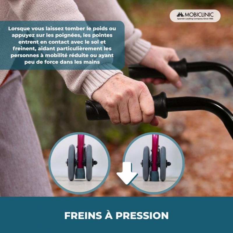 SÉCURITAIRE : ce déambulateur pour adultes est doté de freins à pression, qui s'activent facilement en exerçant une force sur les poignées du déambulateur . Ce modèle permet d'éviter les chutes, offrant une grande sécurité à l'utilisateur pour qu'il puisse se déplacer facilement et gagner en autonomie et indépendance.