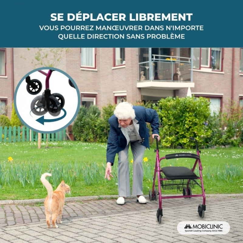 - Le cadre du déambulateur 4 roues est en aluminium peint avec un tube anodisé sur les poignées. Les matériaux de qualité supérieure ajoutent de la valeur, de la sécurité et de la résistance au déambulateur articulé pour personnes âgées.