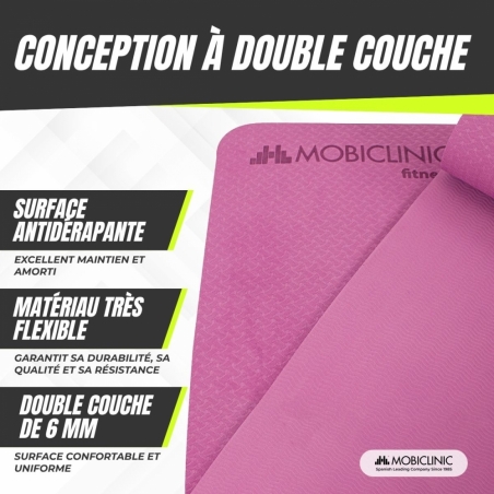 Ce tapis est spécialement conçu pour que les amateurs de yoga et de pilates puissent pratiquer ces exercices quel que soit leur niveau.