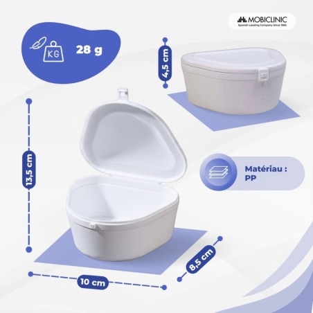 Gardez vos prothèses dentaires propres et exemptes de saleté et de crasse grâce à une boîte à prothèses adaptée et bon marché. L'achat d'une boîte à prothèses à un prix raisonnable est l'une des recommandations les plus sûres pour protéger vos prothèses dentaires de tout agent microbiologique ou de toute casse.