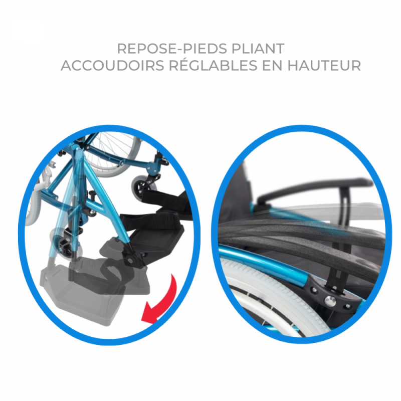 REPOSE-PIEDS AMOVIBLE: La possibilité de retirer les repose-pieds permet de réduire encore la taille de la chaise, facilitant ainsi son transport ou son stockage.