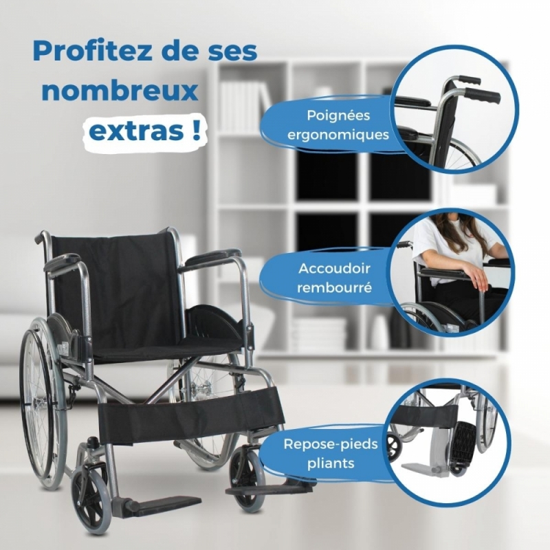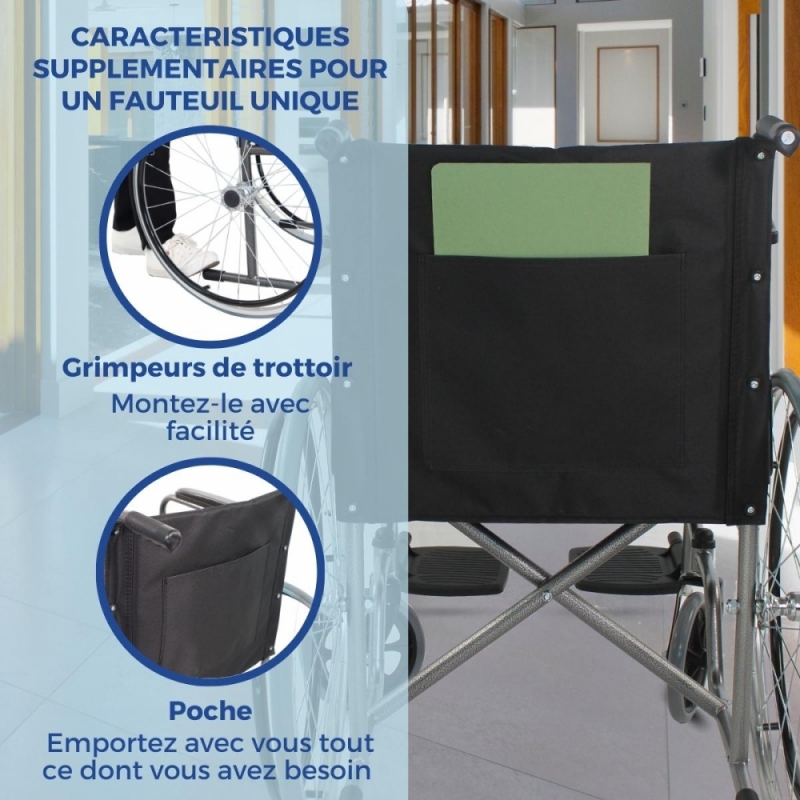 Le fauteuil roulant "Alcazaba" est un fauteuil roulant traditionnel, qui offre sécurité et durabilité. Ses dimensions et sa facilité de transport en font l'une des options les plus attrayantes.