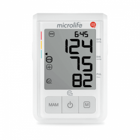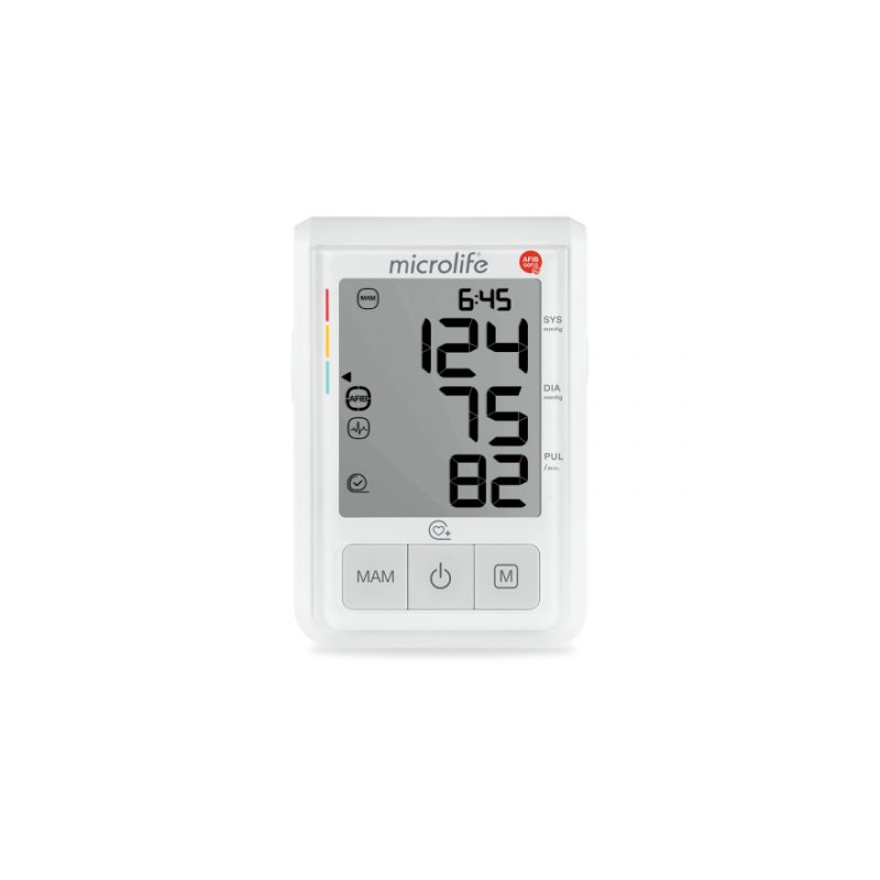 Le B3 AFIB est un tensiomètre qui, grâce à la technologie AFIBsens, détecte avec fiabilité la fibrillation auriculaire (FA) lors de la mesure de la pression artérielle en mode MAM (3 mesures en 1 clic). La fibrillation auriculaire est l'une des causes les plus fréquentes d'AVC et, dans de nombreux cas, elle est asymptomatique ; un dépistage précoce est donc crucial.