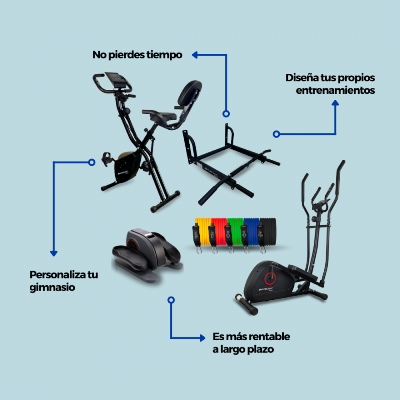 Notre Pack Gym Fitness est l'ensemble parfait pour les amateurs de sport qui n'ont pas beaucoup de temps, car il est conçu pour devenir une salle de sport à domicile, bien qu'il puisse également être installé au bureau. Tout ce dont vous avez besoin, c'est d'un espace libre.