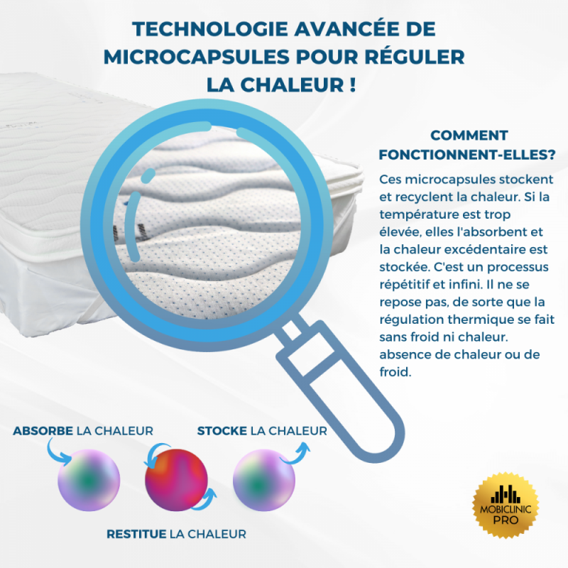 Ces microcapsules emmagasinent et recyclent la chaleur , si elle est trop élevée elles l'absorbent et l'excédent de chaleur est emmagasiné. C'est un processus répétitif et infini, il ne repose pas, donc une régulation thermique est réalisée avec l'absence de froid ou de chaleur.