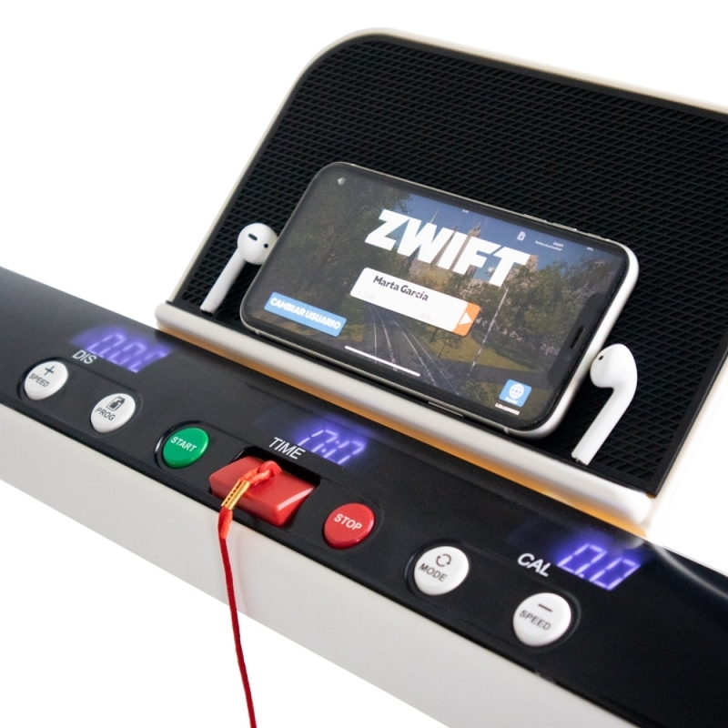 Grâce à son écran LED et sa planche intégrée pour supporter le mobile, vous pourrez regarder vos séries et écouter vos chansons préférées pendant que vous vous entraînez. De la même manière, avec les applications compatibles, vous pouvez choisir entre différents plans d'entraînement, itinéraires cyclables en groupe, courses et bien plus encore. De même, le tapis roulant peut être utilisé sans l'application , car il dispose d'une barre LED avec 12 programmes d'entraînement complets.