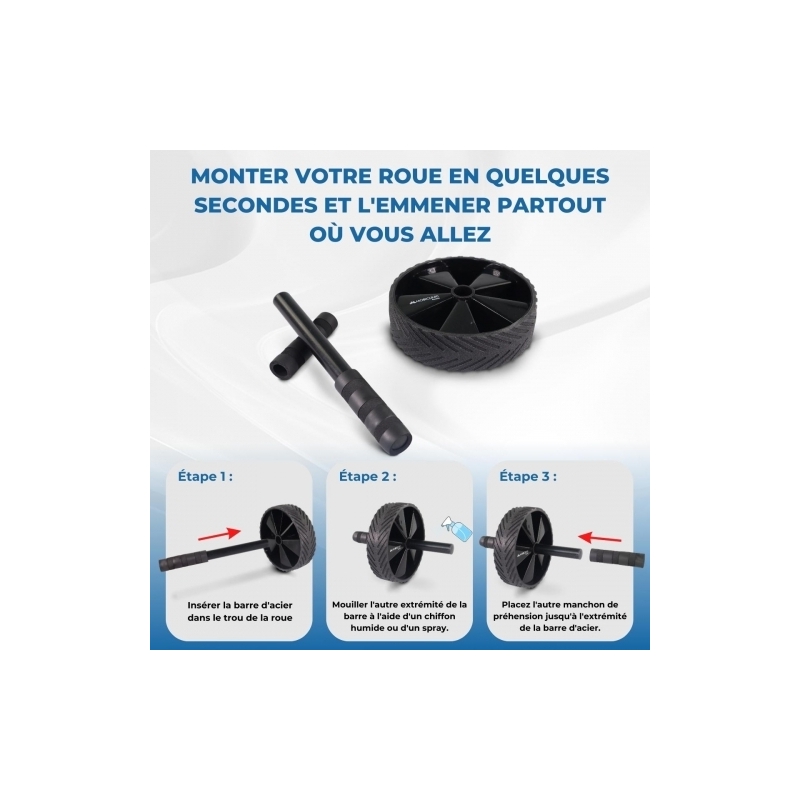 La structure de cette roue est solide et robuste , puisque sa tige en acier inoxydable et ses pneus de qualité supérieure permettent à ce rouleau de fitness de supporter un poids maximum de 150 kg sans vaciller . De même, ses tiges garantissent une prise en main qui rendra vos exercices beaucoup plus stables.