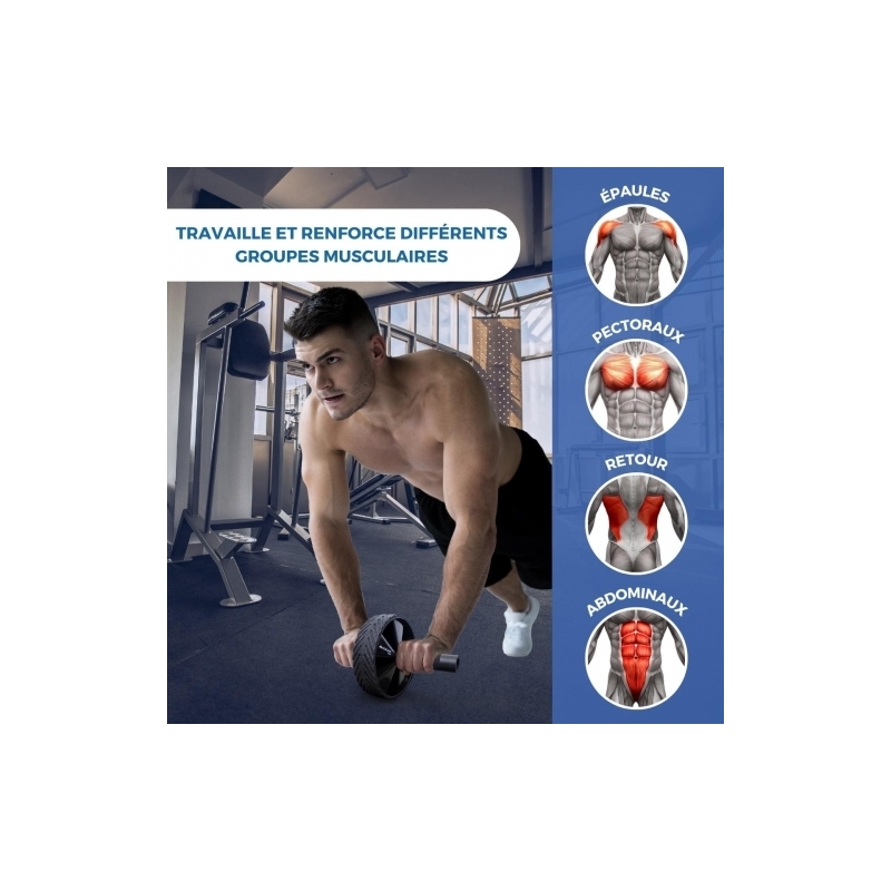 - Les entraînements avec une roue abdominale contribuent à un entraînement complet du corps. Avec cet accessoire de sport, vous pouvez exercer intensément vos abdominaux superficiellement et profondément, ainsi que muscler vos fessiers et stabiliser votre colonne vertébrale. De plus, lorsque vous vous entraînez avec le rouleau abdominal, vous travaillez également la zone des épaules et du dos, augmentant ainsi la flexibilité et la force des deux zones.