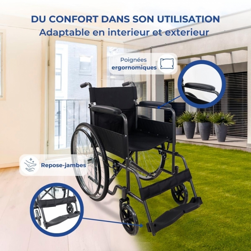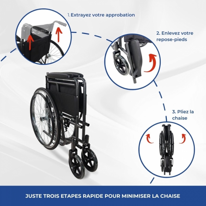 PLIABLE : fauteuil roulant pliant facile à ranger . Se plie à plat pour un transport facile.