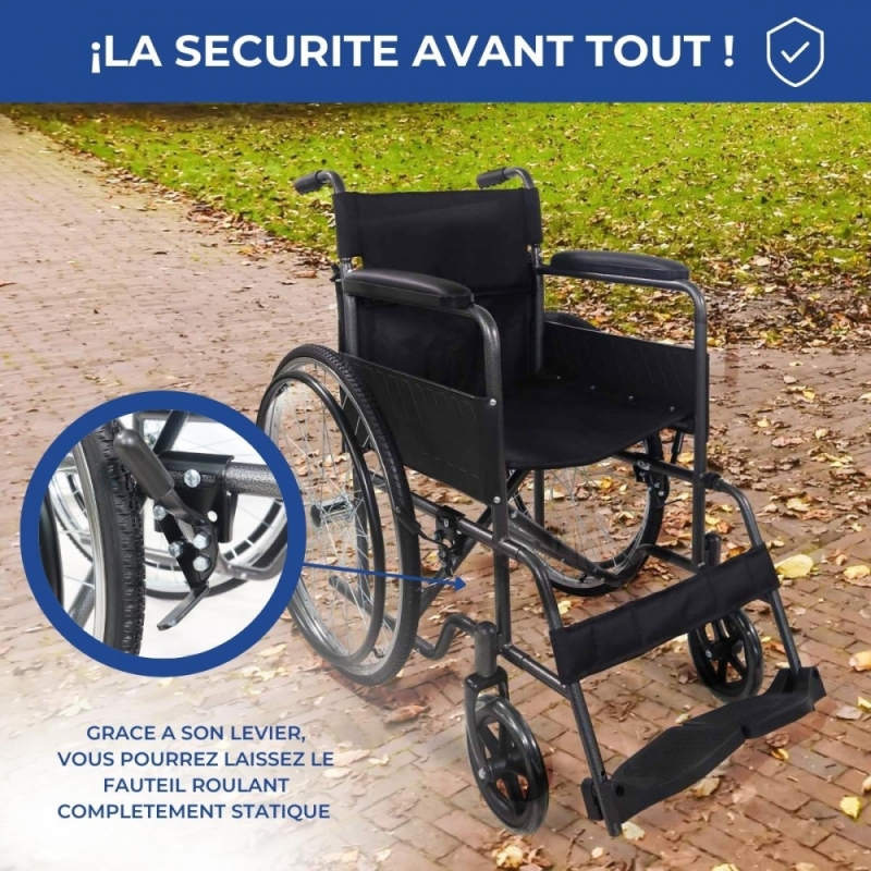 CONFORTABLE : il possède de grandes roues automotrices. Repose-pieds et accoudoirs fermes et confortables. Il dispose également de freins sur les roues arrière, ce qui en fait une chaise sûre pour les personnes âgées .
