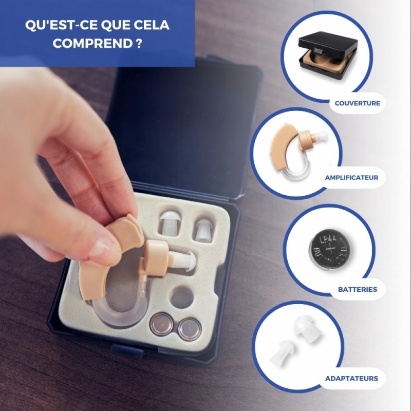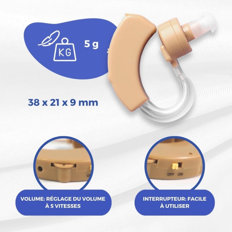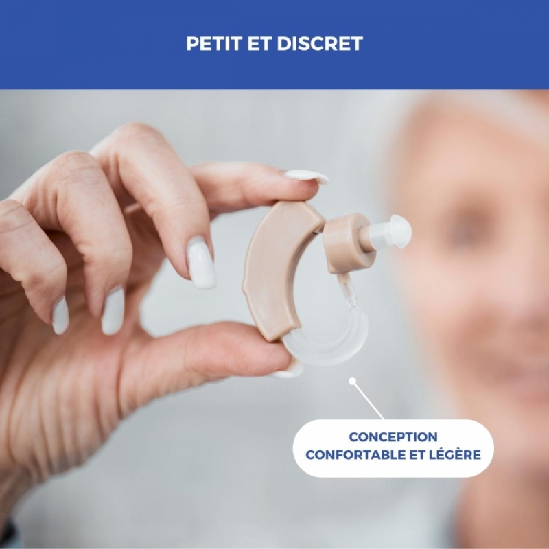 Cet amplificateur de son vous aidera à améliorer votre audition et à vous sentir plus connecté à votre environnement. Il s'agit d'un appareil qui augmente le volume des sons ambiants, particulièrement utile pour les personnes souffrant d'une perte auditive légère à modérée.