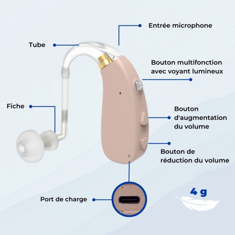 Cet amplificateur de son vous aidera à augmenter vos capacités et à vous sentir connecté à l'environnement qui vous entoure. Il s’agit d’un appareil qui augmente le volume du son ambiant, notamment chez les personnes ayant une perte auditive légère ou modérée.