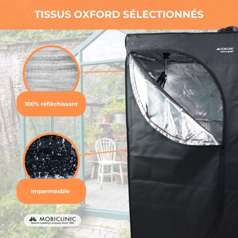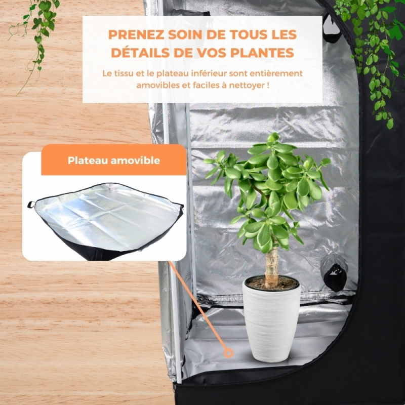 Avec l'armoire de culture Growbox, vous pouvez libérer vos talents de jardinier et prendre soin à 100 % de vos plantes et cultures. Grâce à son tissu en nylon résistant et à ses fermetures éclair conçues pour bloquer la lumière, il garantit un environnement 100 % étanche, maximisant la réflectivité et la distribution de la lumière.