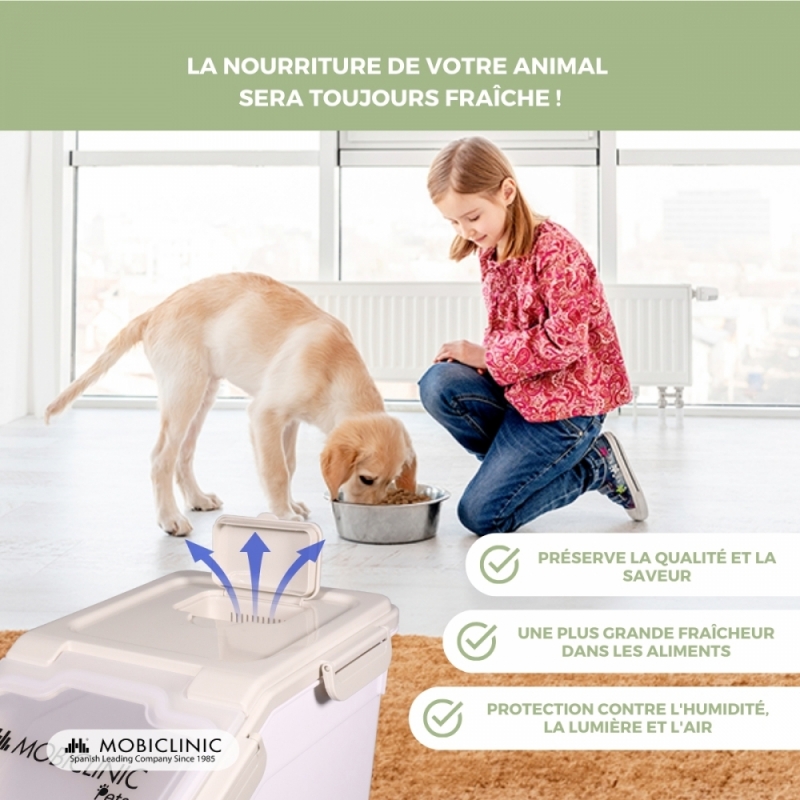 Notre contenant à nourriture FeedPet est une solution pratique et efficace pour conserver la nourriture pour animaux de compagnie.