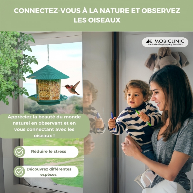 En plus de sa fonction alimentaire, la mangeoire à oiseaux Pico se transforme en un précieux outil pédagogique en plein air. Découvrir les différentes espèces d'oiseaux, comprendre leurs comportements et leurs besoins alimentaires, devient un enrichissement pédagogique tout en embellissant votre environnement.