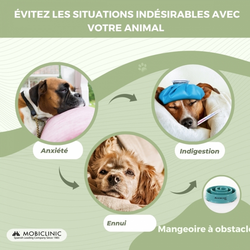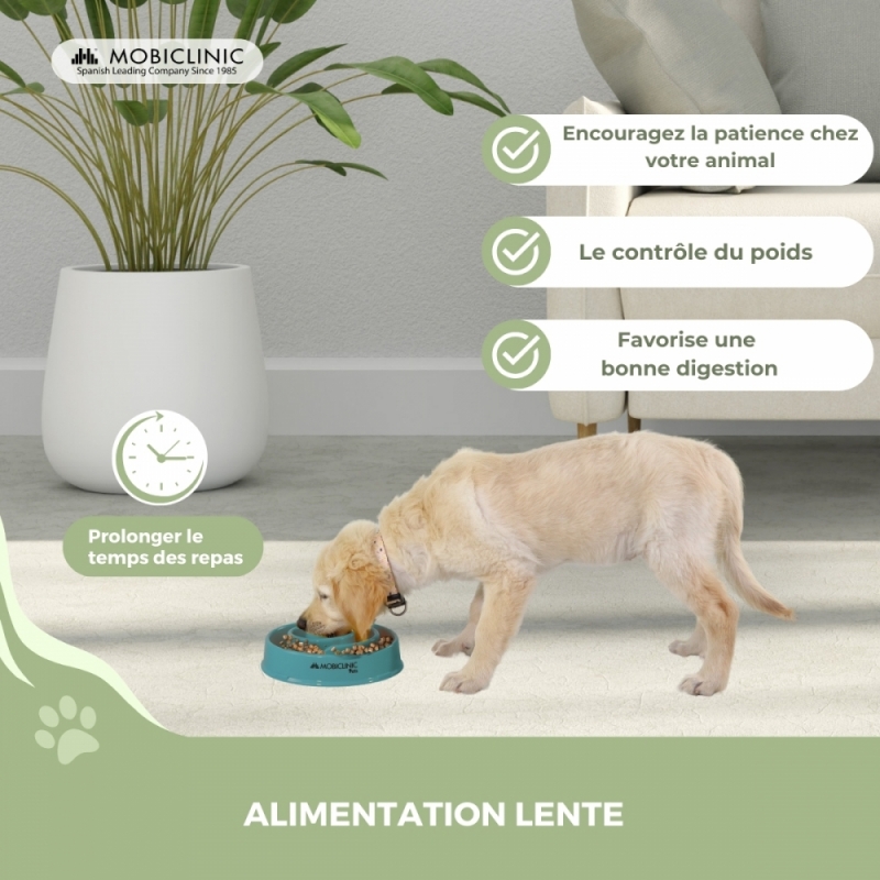 La mangeoire lente MobiEat va au-delà du simple ralentissement de l'alimentation de votre animal. Ce bol innovant prévient non seulement les vomissements et réduit les ballonnements d'estomac , mais favorise également une digestion plus saine .