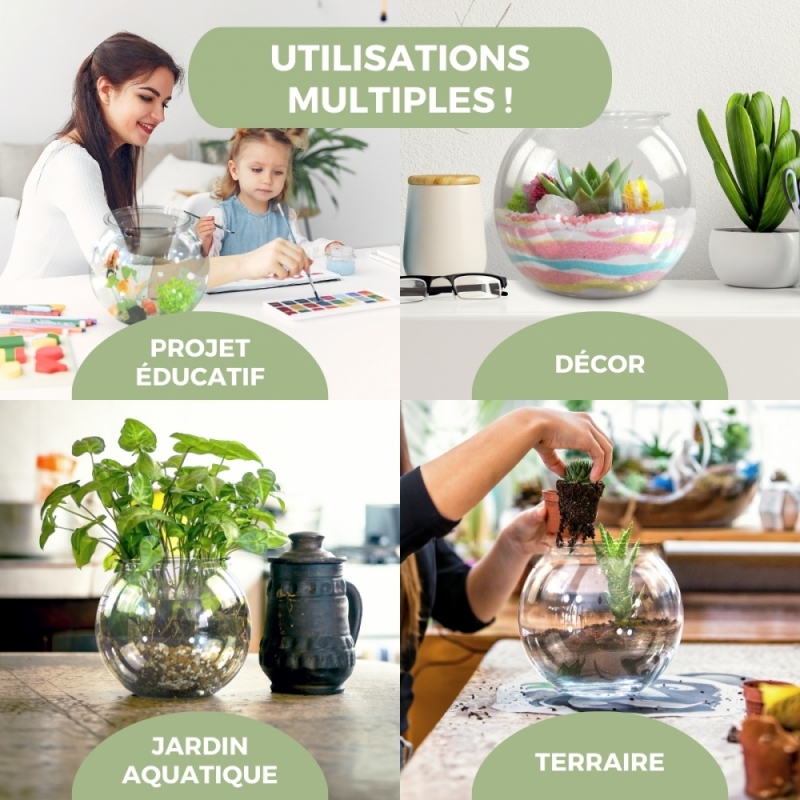 EXPLOREZ VOTRE CRÉATIVITÉ AQUATIQUE : Utilisez notre aquarium rond Nemo comme outil éducatif, jardin aquatique , microécosystème fascinant ou pièce maîtresse décorative avec des pierres, des coquillages et des lumières LED submersibles. Vous pouvez également le remplir de fleurs, de perles de verre, de billes décoratives ou l'utiliser comme terrarium .