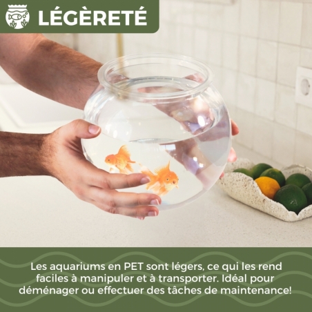 COMPACT ET TRANSPARENT : D'une capacité de 4 litres , l' aquarium Nemo est idéal pour les petits poissons comme les bettas ou les poissons rouges. Cet aquarium prend peu de place, ce qui le rend parfait pour les endroits où l'espace est limité. Fabriqué en matériau PET transparent, il permet une vision claire du milieu aquatique , facilitant ainsi l'observation des poissons.