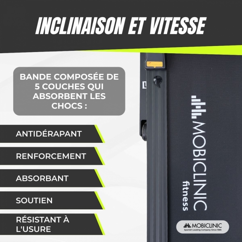GRANDE SURFACE DE COURSE : Grâce à sa surface de course généreuse de 40 x 110 cm , vous bénéficierez d’un espace confortable et sécurisé pour la marche et la course. Le tapis de course Etna est doté de 5 couches qui renforcent sa surface, la rendant antidérapante, amortissante, résistante à l’usure et protégeant vos genoux.