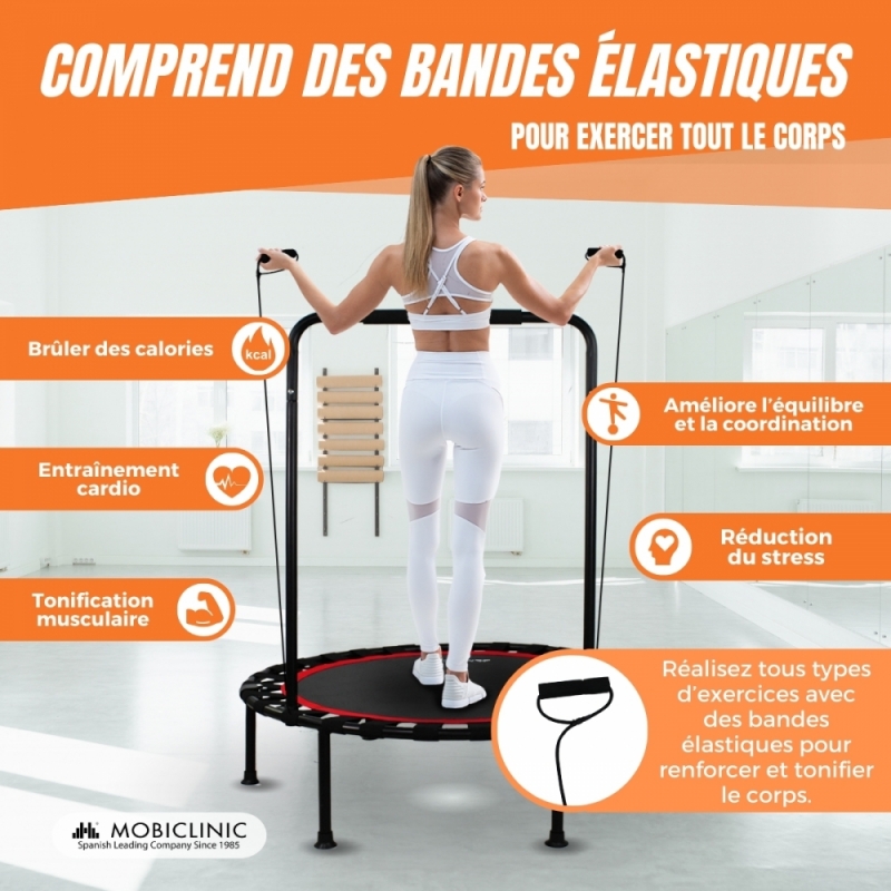 Le trampoline Kangumobi transforme l'exercice en une activité amusante et efficace. Vous pouvez faire une variété d'exercices. Seulement 10 minutes de saut sur le trampoline équivalent à la dépense calorique d’une heure de jogging ou de 20 minutes de natation, ce qui en fait un moyen efficace de rester en forme et d’améliorer votre santé cardiovasculaire.