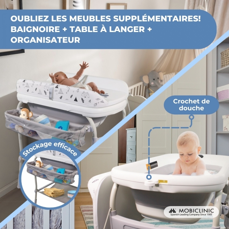 Gain de place et polyvalence : cette table à langer 3 en 1 est la solution parfaite pour gagner de la place pour les maisons avec un espace limité. Il fonctionne comme baignoire, table à langer et organiseur, évitant ainsi d'avoir trois meubles différents. Son design compact et multifonctionnel en fait un allié idéal pour les familles.