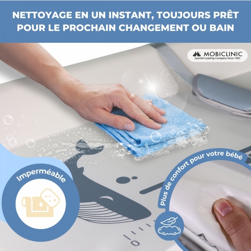 L'une des caractéristiques les plus notables de cette table à langer est sa hauteur réglable sur quatre positions (86, 89, 92 et 95 cm), permettant aux parents d'adapter la table à langer à leur hauteur et ainsi d'éviter les maux de dos. Cette ergonomie améliore non seulement le confort pendant le bain et le changement des couches, mais offre également un environnement plus sûr et plus confortable pour bébé et ses parents. De plus, le matériau imperméable et facile à laver avec lequel il est fabriqué facilite l'entretien quotidien, permettant un nettoyage rapide et facile avec un chiffon humide et du savon, ce qui assure une plus grande durabilité du produit.