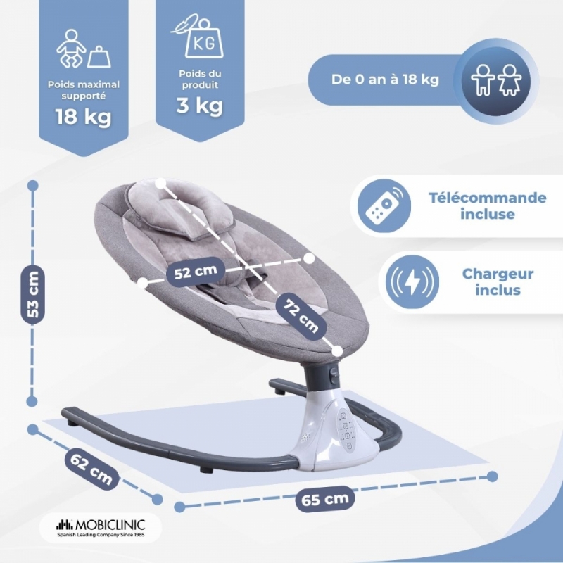 FONCTION DE BERCEMENT RÉGLABLE : Offre plusieurs vitesses pour adapter le mouvement aux préférences de bébé. Idéal pour apaiser et favoriser l’endormissement.