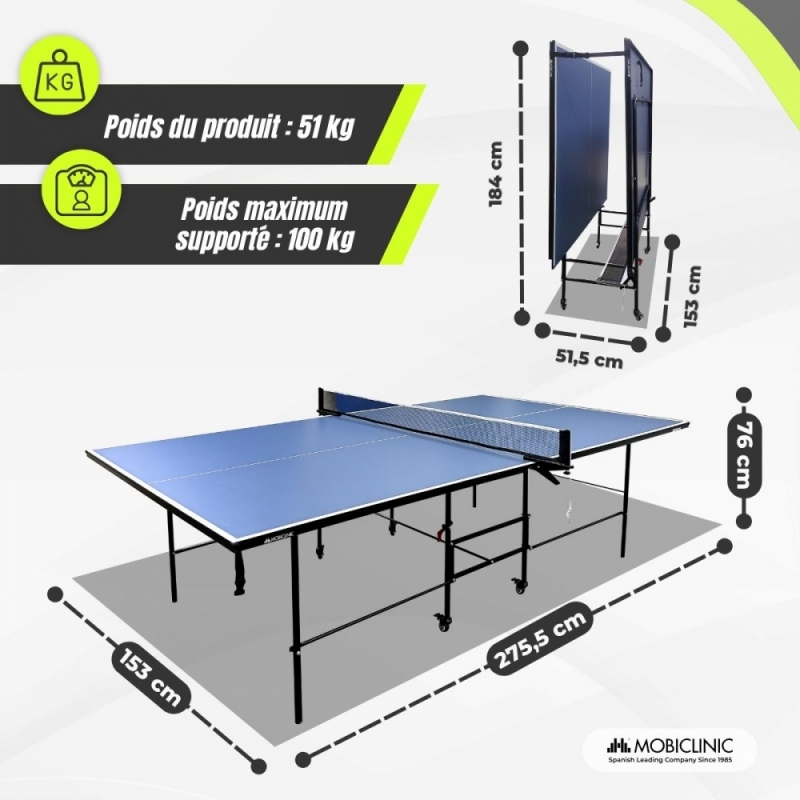 CARACTÉRISTIQUES PROFESSIONNELLES : Avec ses dimensions officielles de championnat, il est idéal pour une utilisation à domicile dans un garage, un sous-sol ou une salle de jeux. Comprend un filet à clipser, des raquettes et des balles pour un jeu complet et pratique.