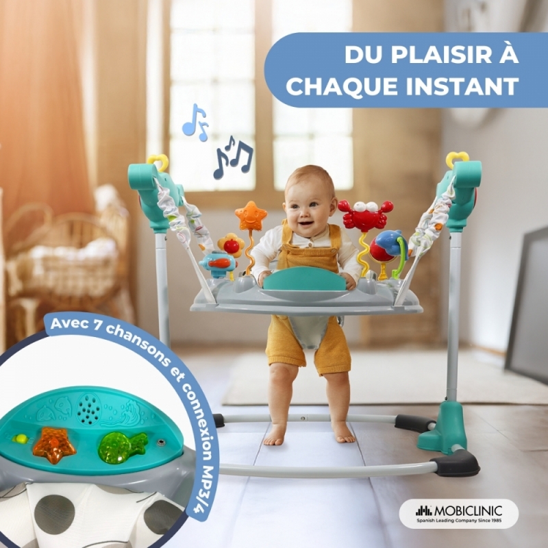 JEU INTERACTIF : Ce sauteur pour bébé est la combinaison parfaite de plaisir et d'apprentissage. Il dispose de 8 jouets interactifs, de musique avec 7 chansons intégrées et de lumières qui stimulent les sens et le développement moteur des enfants.