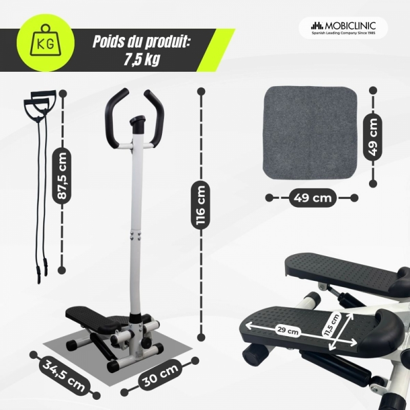 Le stepper Step-Pro est la meilleure option pour ceux qui souhaitent rester en forme à la maison. Sa structure permet de travailler simultanément les jambes, les fessiers et les bras, alliant exercices cardiovasculaires et tonification musculaire.