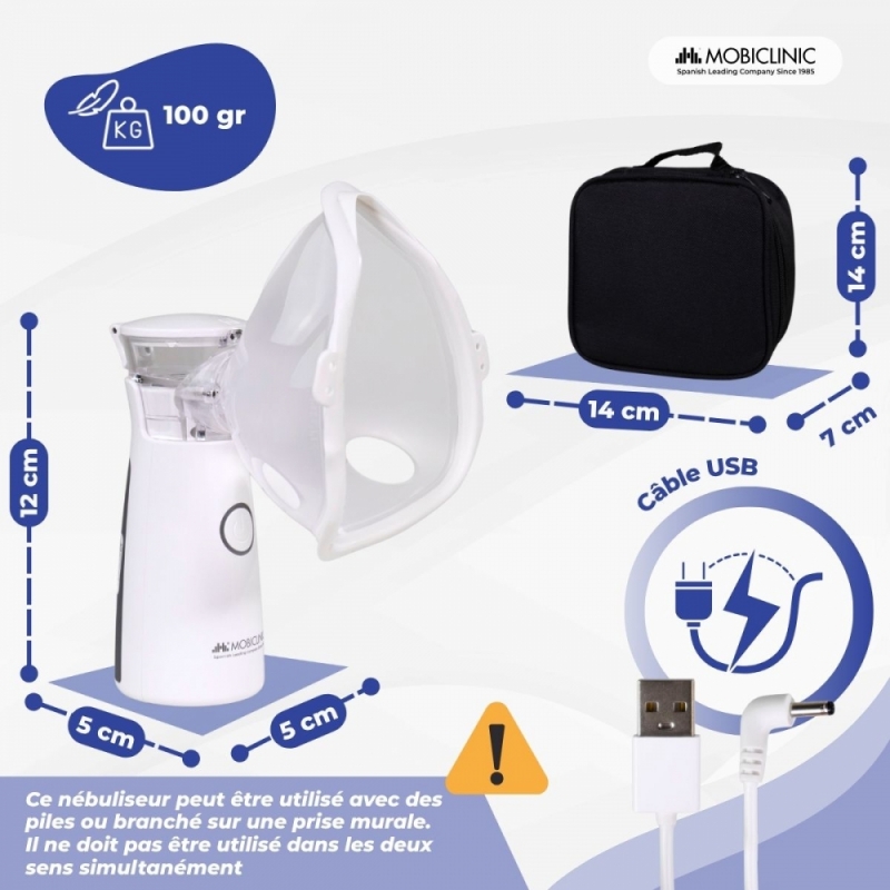 Ce nébuliseur peut être utilisé sans fil avec des piles ou branché sur une prise secteur via USB (inclus). Il est donc idéal pour une utilisation en tout lieu et garantit une utilisation sûre. Son utilisation est intuitive, avec un seul bouton, et convient à tous les utilisateurs. De plus, son système « push » permet de retirer facilement le gobelet doseur pour un nettoyage et une hygiène irréprochables.