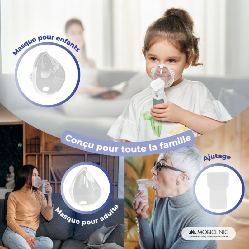 POUR TOUTE LA FAMILLE : Ce nébuliseur est très simple d'utilisation, il suffit d'appuyer sur un bouton, ce qui le rend accessible à tous, même aux enfants. Il comprend également un embout buccal, un masque adulte et un masque enfant, s'adaptant ainsi aux besoins de chaque utilisateur.
