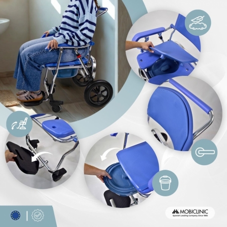 PLIABLE : Grâce à sa conception compacte, cette chaise se plie rapidement pour un rangement facile dans les petits espaces ou un transport aisé. Idéale pour un usage domestique, en EHPAD ou en milieu hospitalier.