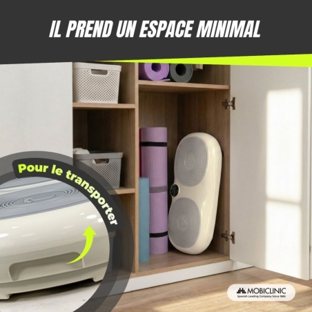 Notre plateforme vibrante Karol est la solution idéale pour s'entraîner à domicile. Elle améliore efficacement et confortablement l'activation musculaire, la tonification et le bien-être général. Son format compact et léger permet de l'utiliser partout dans la maison.