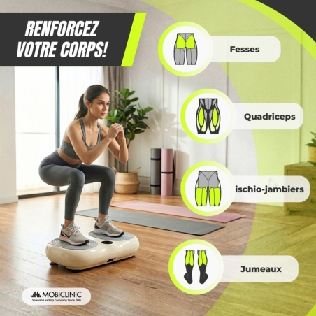 STABLE ET SÛR : Doté d’un moteur de 200 W et supportant un poids maximal de 130 kg, il offre une vibration constante et stable. Sa construction en acier et en plastique ABS lui confère robustesse, durabilité et sécurité d’utilisation.