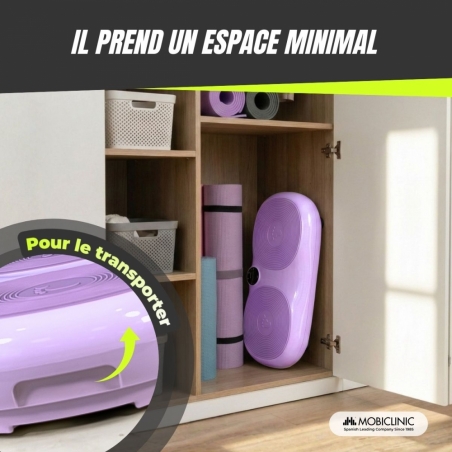 Notre plateforme vibrante Karol est la solution idéale pour s'entraîner à domicile. Elle améliore efficacement et confortablement l'activation musculaire, la tonification et le bien-être général. Son format compact et léger permet de l'utiliser partout dans la maison.