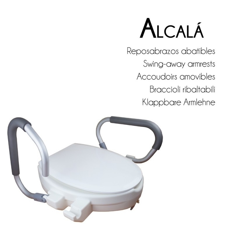 Rehausseur pour toilette avec accoudoirs rabattables pour faciliter la sortie des toilettes. Idéal pour les personnes qui ont des difficultés à s'asseoir et à se lever des toilettes. Il fournit un point d'appui efficace et confortable pour les personnes à mobilité réduite.