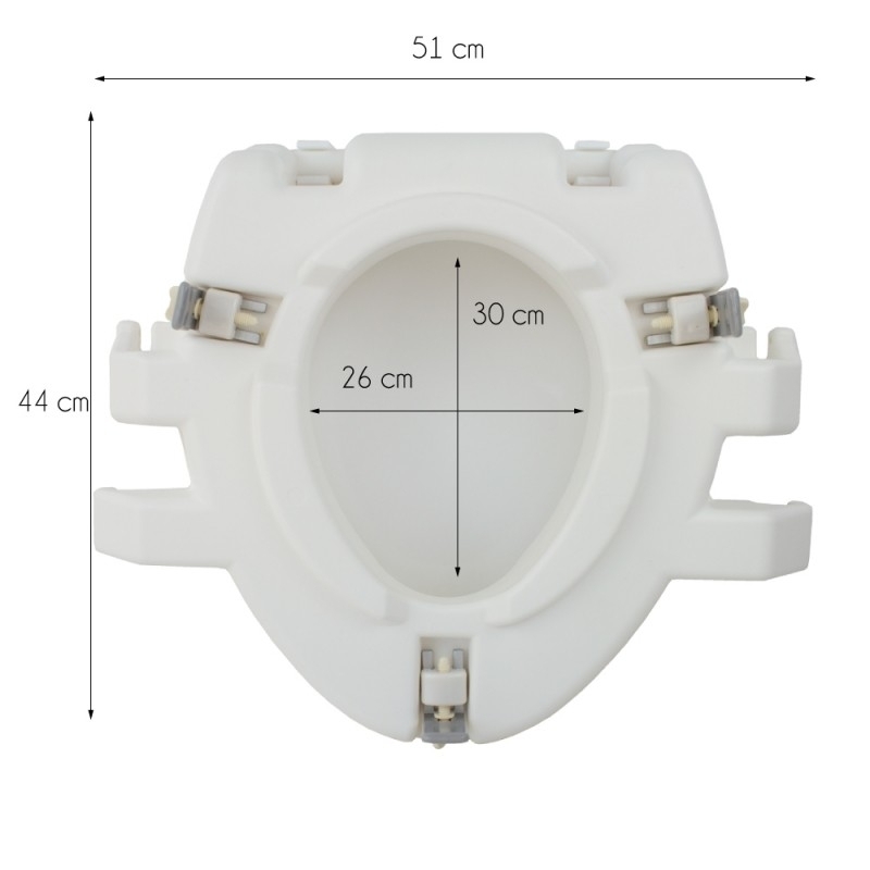 Les accoudoirs du rehausseur pour toilette offrent un soutien supplémentaire lorsque l'on s'assied sur les toilettes. En outre, ils permettent d'économiser l'installation de barres et de poignées sur le mur, et peuvent être repliés pour faciliter le transfert latéral. L'installation du rehausse wc est simple, elle se fait en quelques clips, sans utiliser d'outils. Les matériaux sont inoxydables et de la plus haute qualité, assurant ainsi la durabilité du produit. Il est compatible avec la plupart des toilettes.