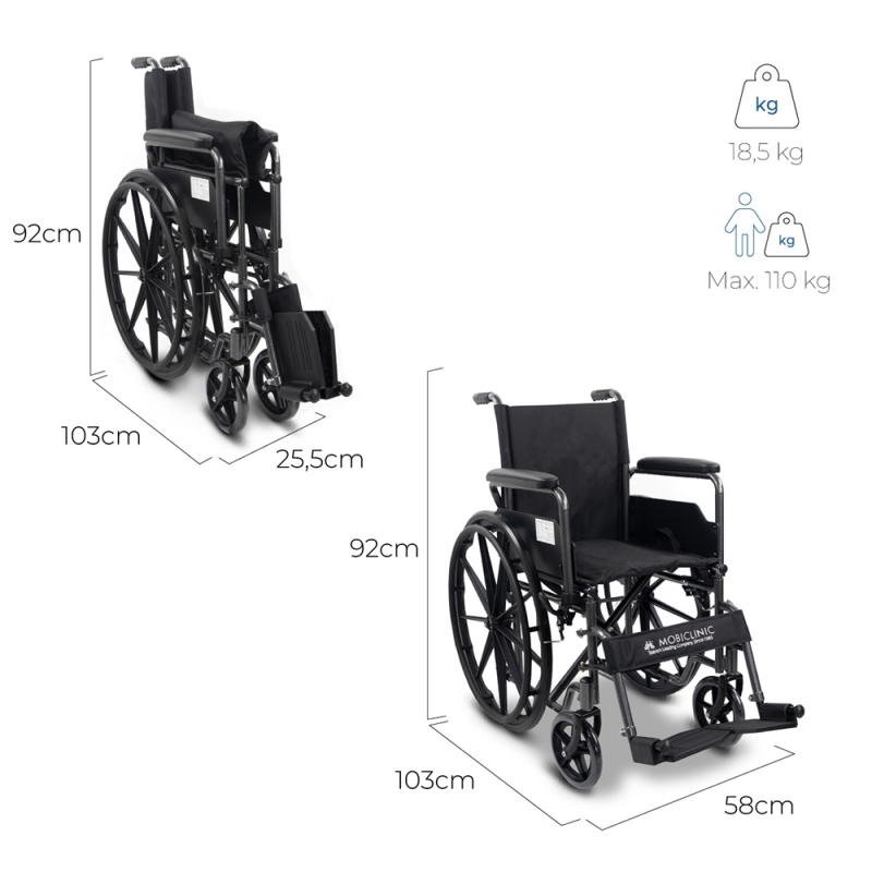 En termes de design et d'ergonomie, les fauteuils orthopédiques ont un design élégant avec un cadre de couleur anthracite, un revêtement en nylon et une poche dans le dossier pour transporter des effets personnels. Il dispose d'un siège large et confortable avec un support jusqu'à 110 kg - des repose-pieds réglables, adaptables à la hauteur de l'utilisateur et faciles à enlever.
