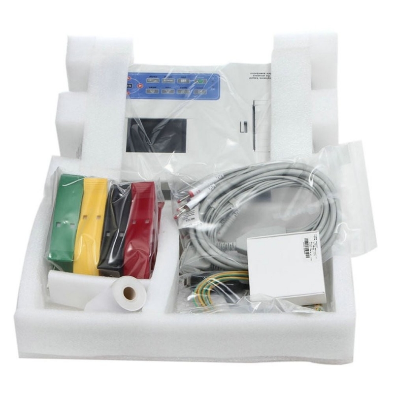 Les fonctions comprennent l'enregistrement et l'affichage des formes d'onde ECG en mode automatique et manuel, la mesure automatique, le diagnostic automatique des paramètres des formes d'onde ECG et la gestion des historiques en mémoire (1000 cas mémorisables). Il fournit des paramètres de mesure tels que HR, intervalle P-R, durée P, durée QRS, durée T, intervalle Q-T, Q-Tc, axe P, axe QRS, axe T, axe T, R (V5), S (V1), R (V5)+S (V1), etc. Il comprend également une fonction d'interprétation automatique pour aider le professionnel de la santé.