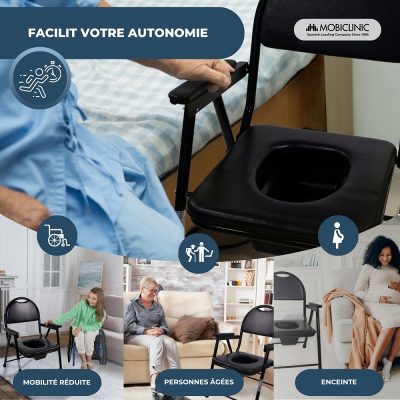 Les femmes enceintes peuvent également profiter des avantages de cette chaise percée. Elles pourront placer ce siège WC à proximité et le plier quand elles n'en auront plus besoin.