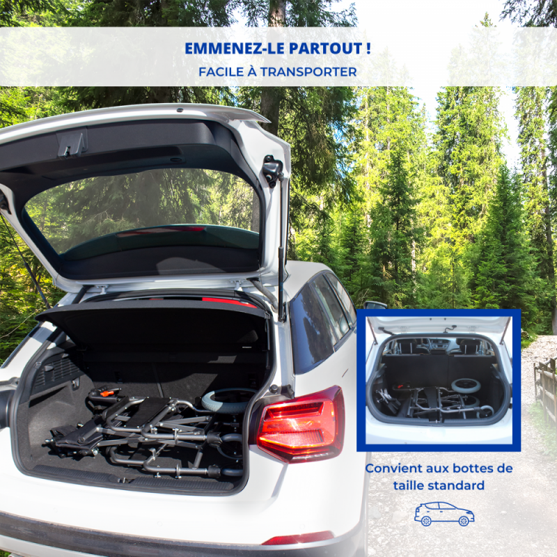 La particularité de ce fauteuil roulant manuel réside dans son système de pliage, qui vous permet de passer par des endroits étroits avant de le réouvrir. Le dossier est également pliable, ce qui vous donne la possibilité de le ranger partout.