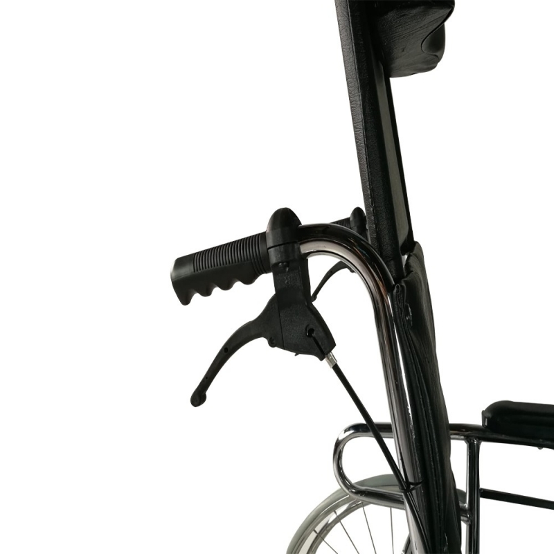 Ce fauteuil roulant pour personnes à mobilité réduite dispose d'un levier au pied, ce qui est d'une grande aide pour l'accompagnateur lors de la montée et de la descente de petites marches.
