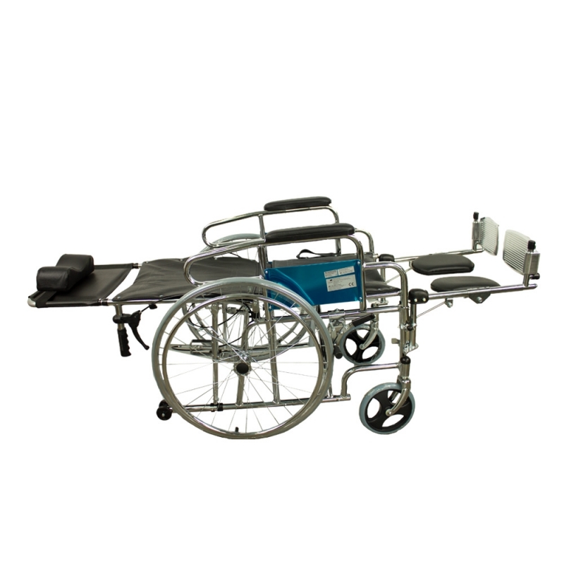 D'autre part, ce fauteuil roulant pour personnes âgées dispose d'un système de pliage, grâce auquel vous pouvez passer dans des endroits étroits et le rouvrir plus tard. Vous gagnerez également de l'espace chez vous en le rangeant. De plus, son dossier inclinable lui permet d'être placé dans 5 positions différentes entre 90 et 180 degrés, et peut même être placé dans une position complètement horizontale avec les repose-pieds. Ce mode permet à l'utilisateur de maintenir sa jambe en position élevée, que ce soit en raison de recommandations médicales ou de problèmes de mobilité, comme un plâtre, par exemple.