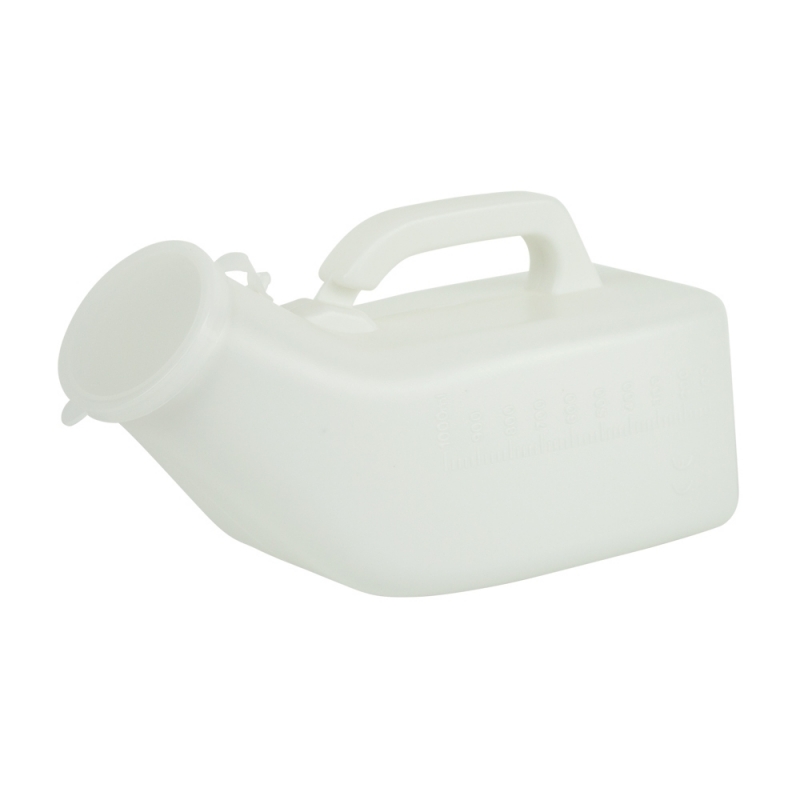 Urinoir portable d'une capacité de 1 litre. Conçu pour les personnes souffrant d'incontinence urinaire ou qui sont alitées en raison d'une maladie chronique ou parce qu'elles subissent une intervention chirurgicale ou une rééducation pendant une période courte ou longue. C'est un produit très apprécié des personnes âgées.