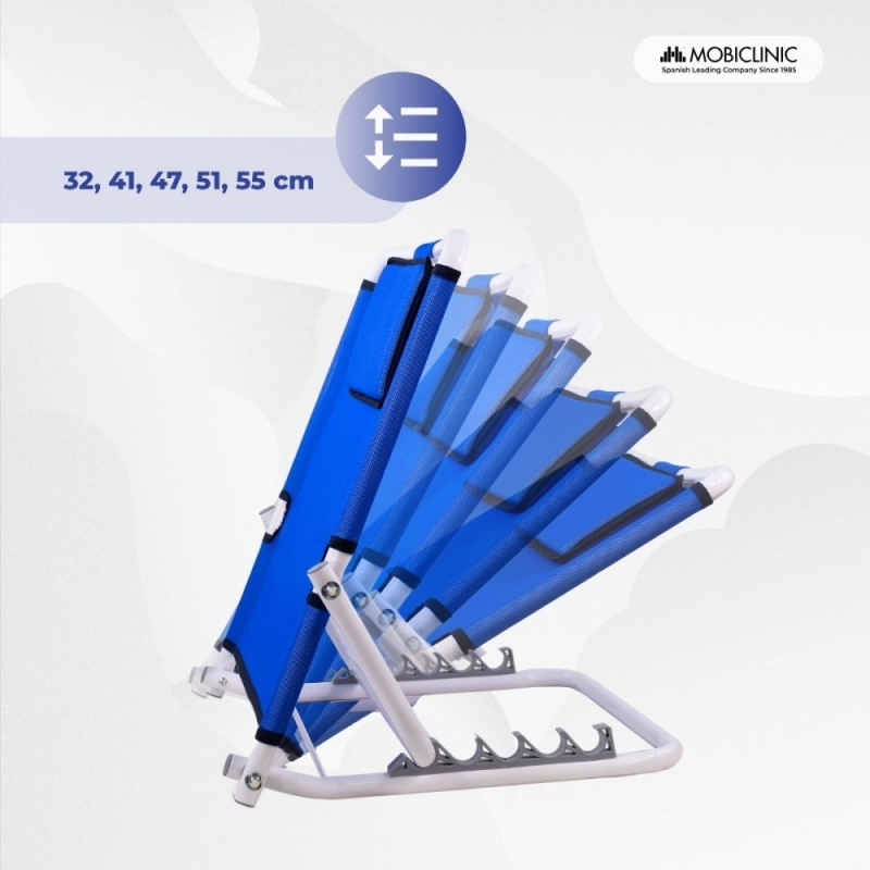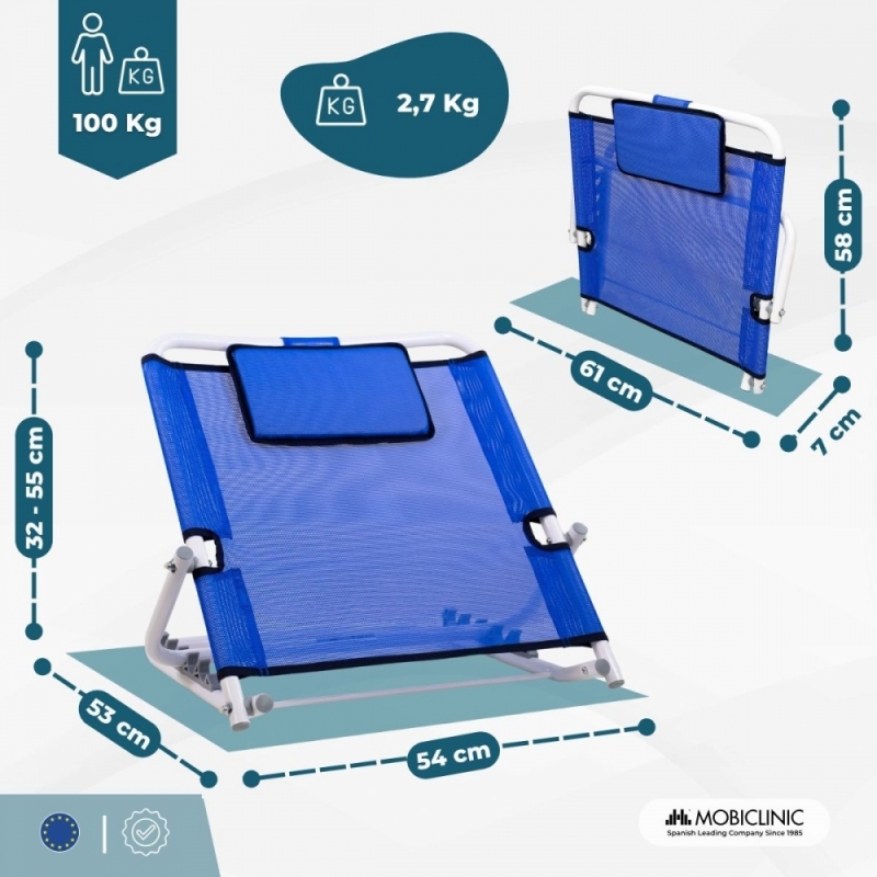 Il s'agit d'un relève-buste appui dos réglable qui offre une inclinaison de 45º à 60º, permettant ainsi aux personnes alitées d'effectuer leurs activités quotidiennes.